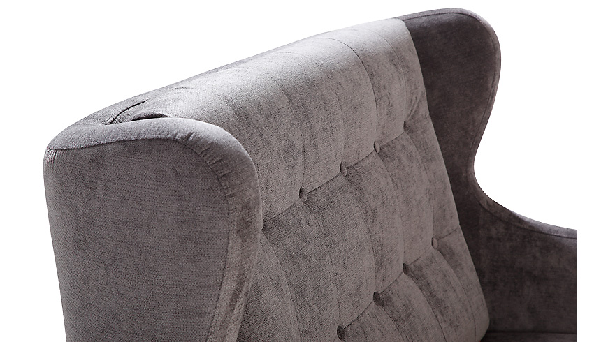 Pikowania oparcia oraz ozdobne guziki akcentują skandynawski styl kolekcji.