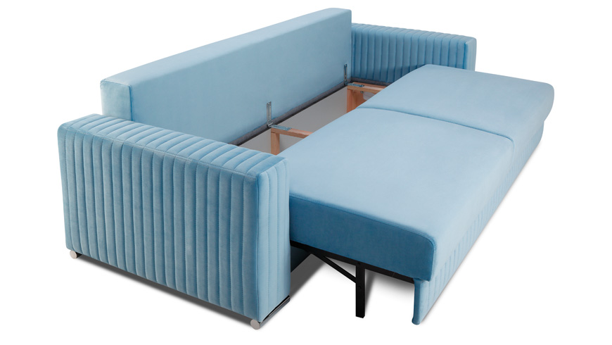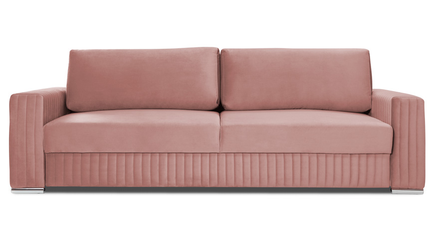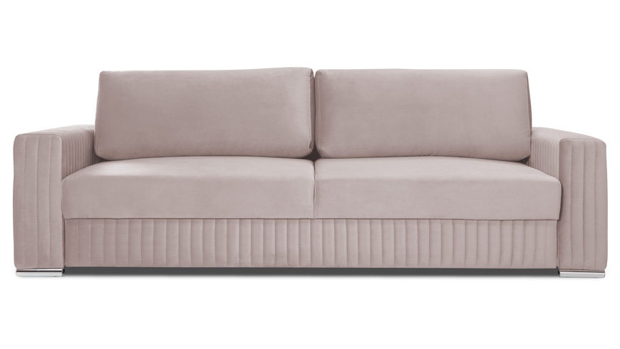 Pełna kolekcja GLAMOUR składa się z sofy 3 osobowej z wygodną funkcją spania, fotela oraz podnóżka.