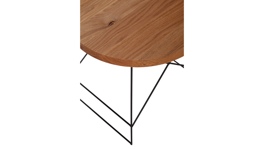 Blat stolika wykonany jest z pełnego dębu o grubości 3 cm, który w całej swej okazałości prezentuje unikalny i autentyczny charakter naturalnego drewna dębowego oraz to co jest wskazane jego niedoskonałości - sęczyny z pęknięciami.