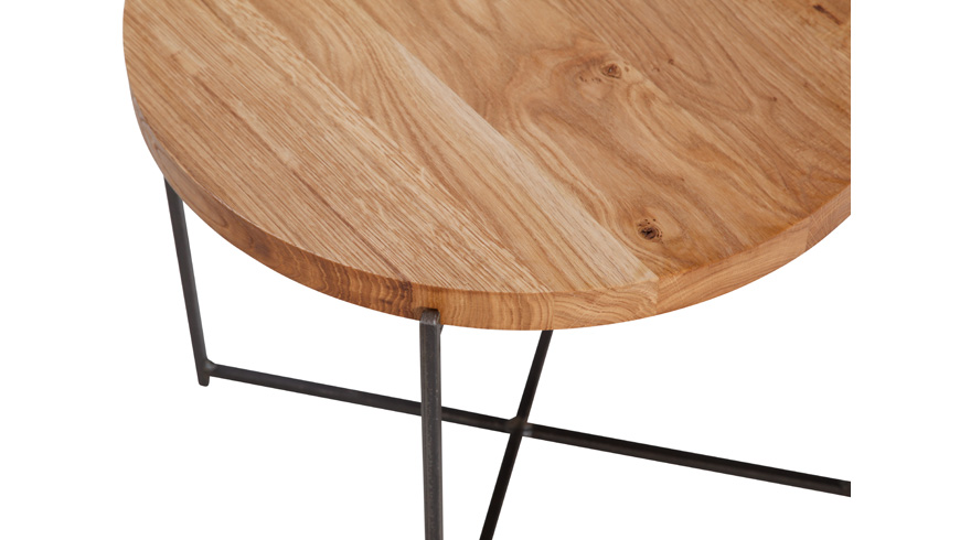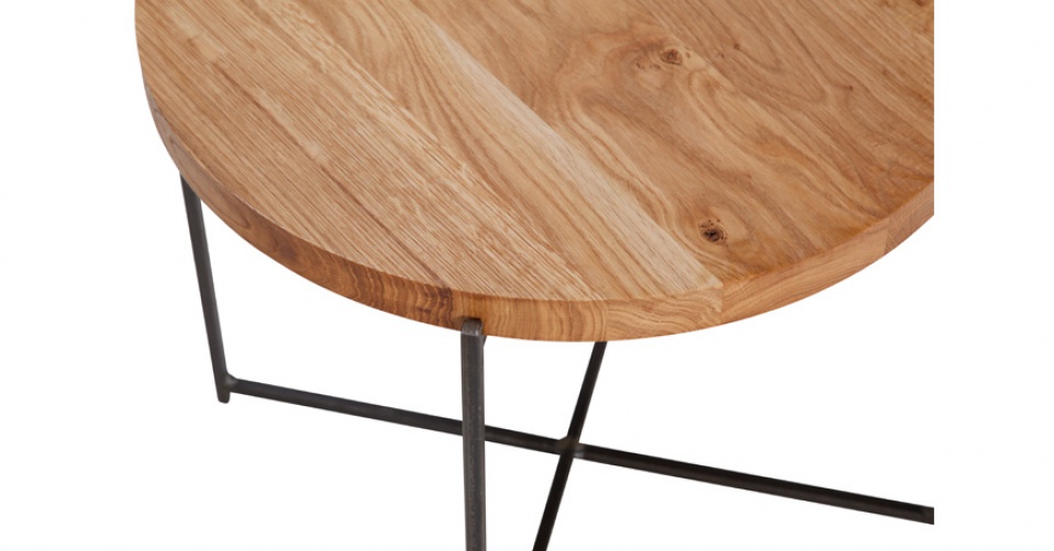 Blat stolika wykonany jest z pełnego dębu o grubości 3 cm, który w całej swej okazałości prezentuje unikalny i autentyczny charakter naturalnego drewna dębowego oraz to co jest wskazane jego niedoskonałości - sęczyny z pęknięciami.