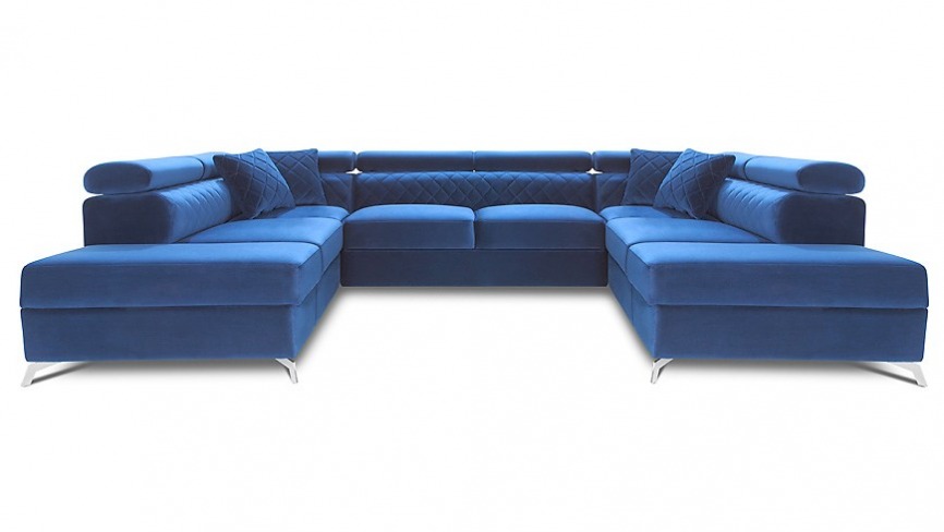 Mebel wyposażony jest w regulowane, w kilku pozycjach zagłówki, funkcję wygodnego spania i dwa pojemniki na pościel.