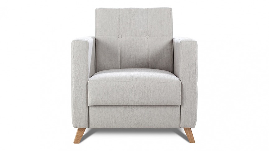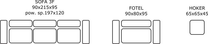 Pełna kolekcja SCANDI to: 3-osobowa sofa, fotel i podnóżek.