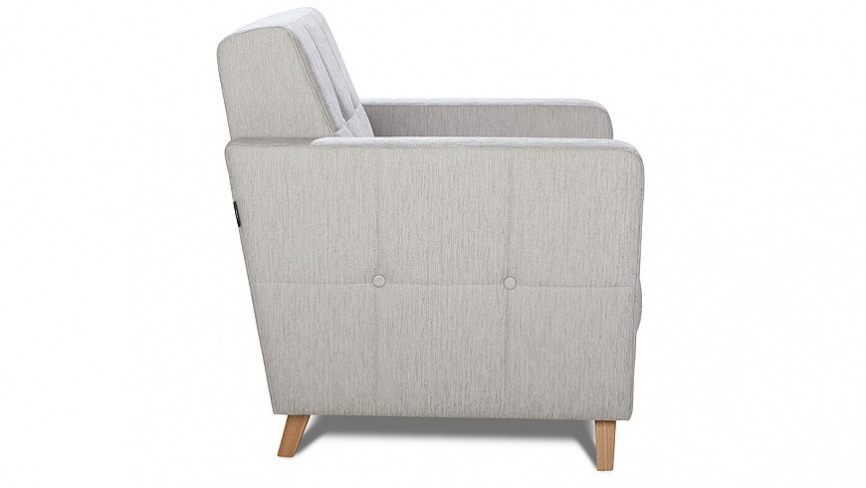 Staranne przeszycia na oparciu oraz unoszące bryłę drewniane, dębowe nogi dodają SCANDI szyku i eleganckiej finezji.