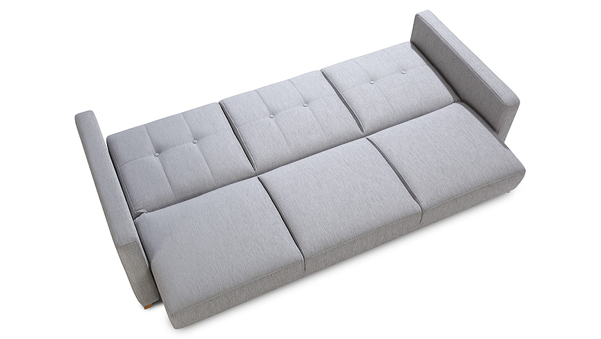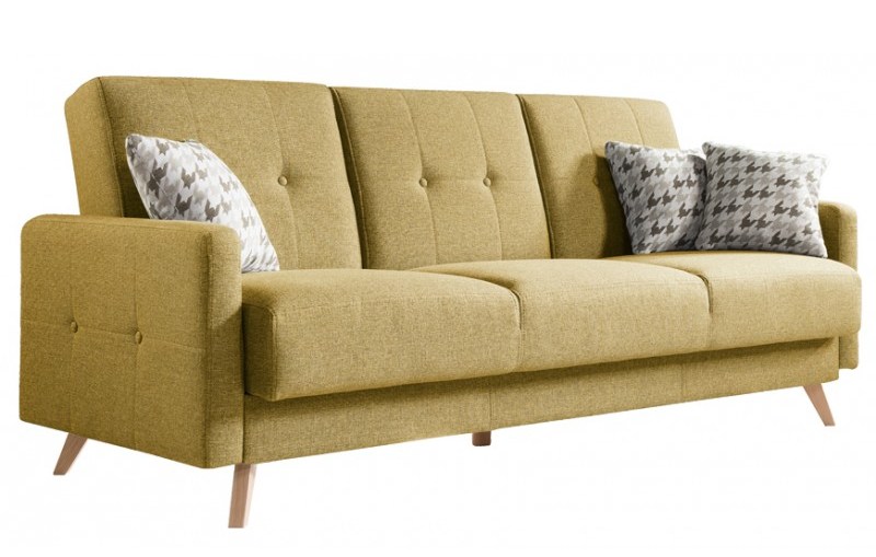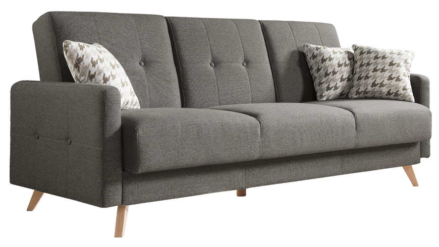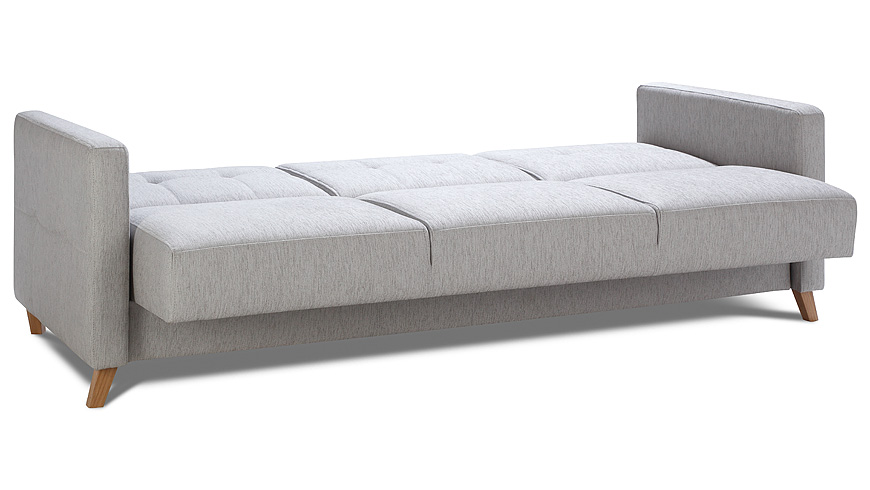 Sofa SCANDI wyposażona jest w wygodną do rozładania funkcję spania oraz pojemnik na pościel.