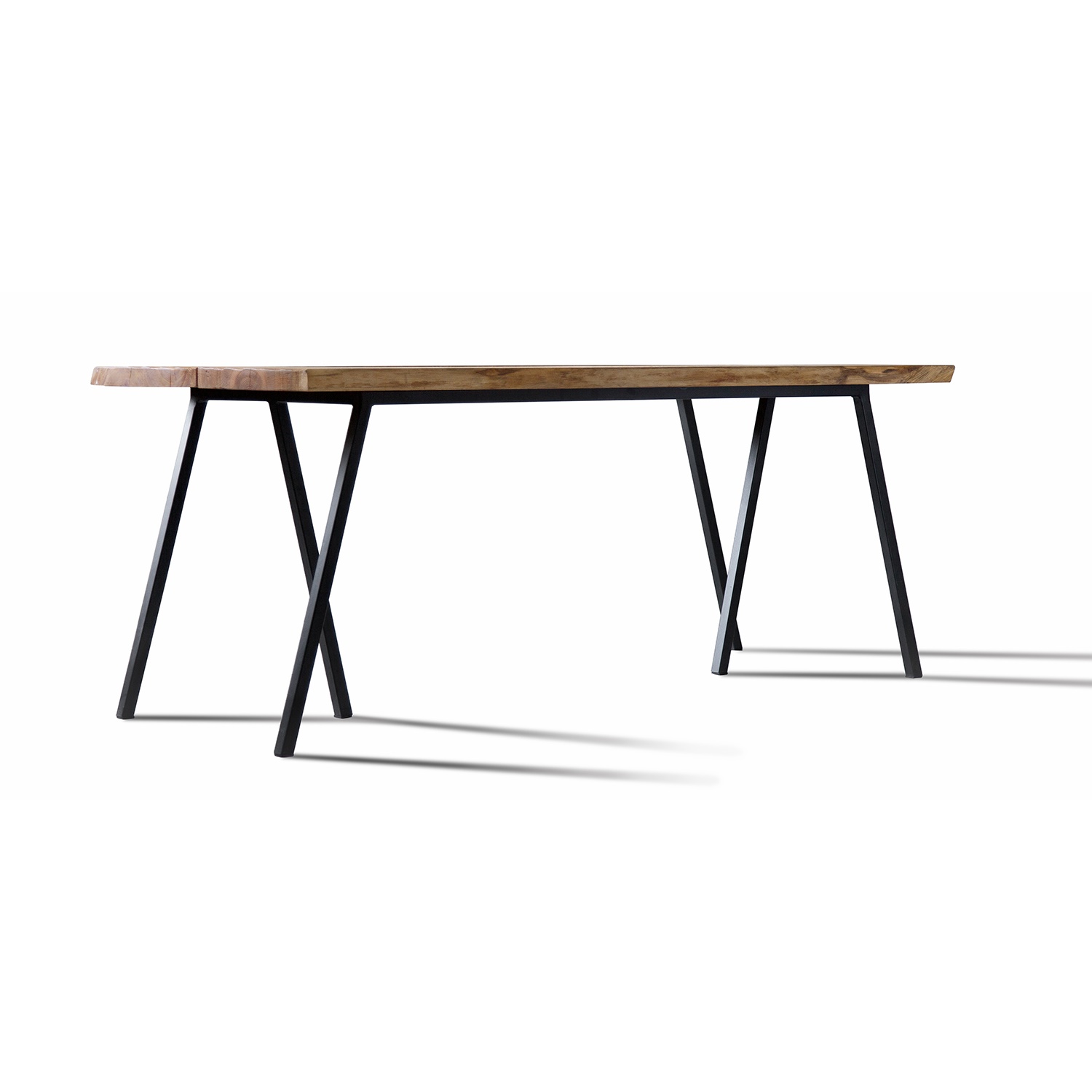Blat stołu LOFT 7011 wykony jest z litego dębu o grubości 3 cm, prezentującego piękne usłojenie drewna, jego ciepłą kolorystykę i widoczne sęczyny z pęknięciami, natomiast podstawa ze stalowego prętu o profilu 3 x 3 cm.